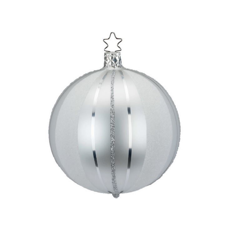 Inge Glas Manufaktur Handgemaakte zilveren kerstbal met zilveren glitter strepen 8 cm