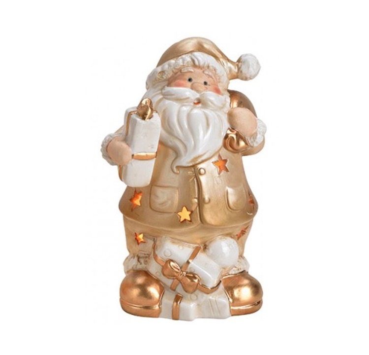 Kerstman Waxinelichthouder met cadeauzak en pakje van keramiek