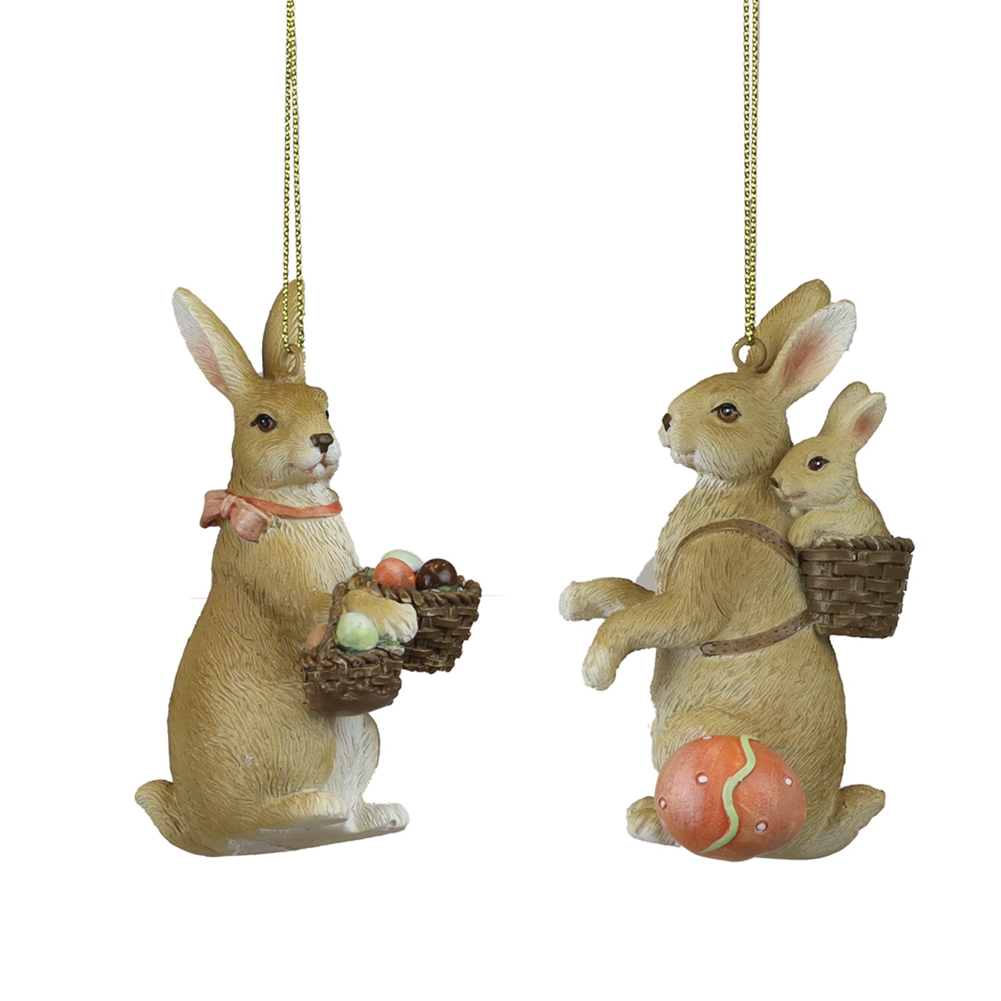 Set van twee paashaasjes met paasmandje - paashaas hangertjes 9 cm hoog