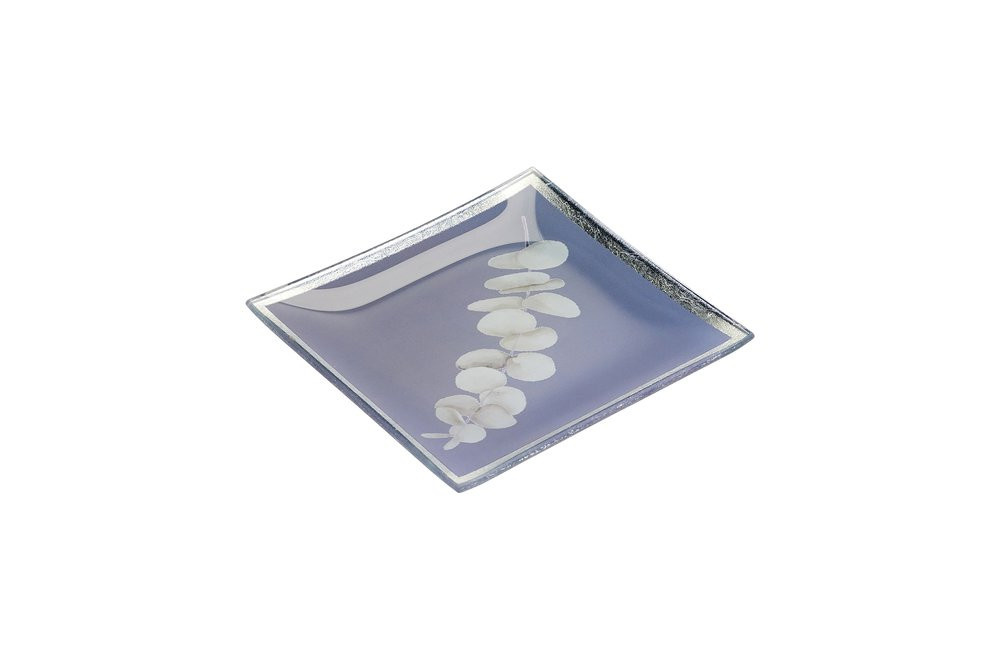 Giftcompany Grijs glazen schoteltje met eucalyptus afbeelding