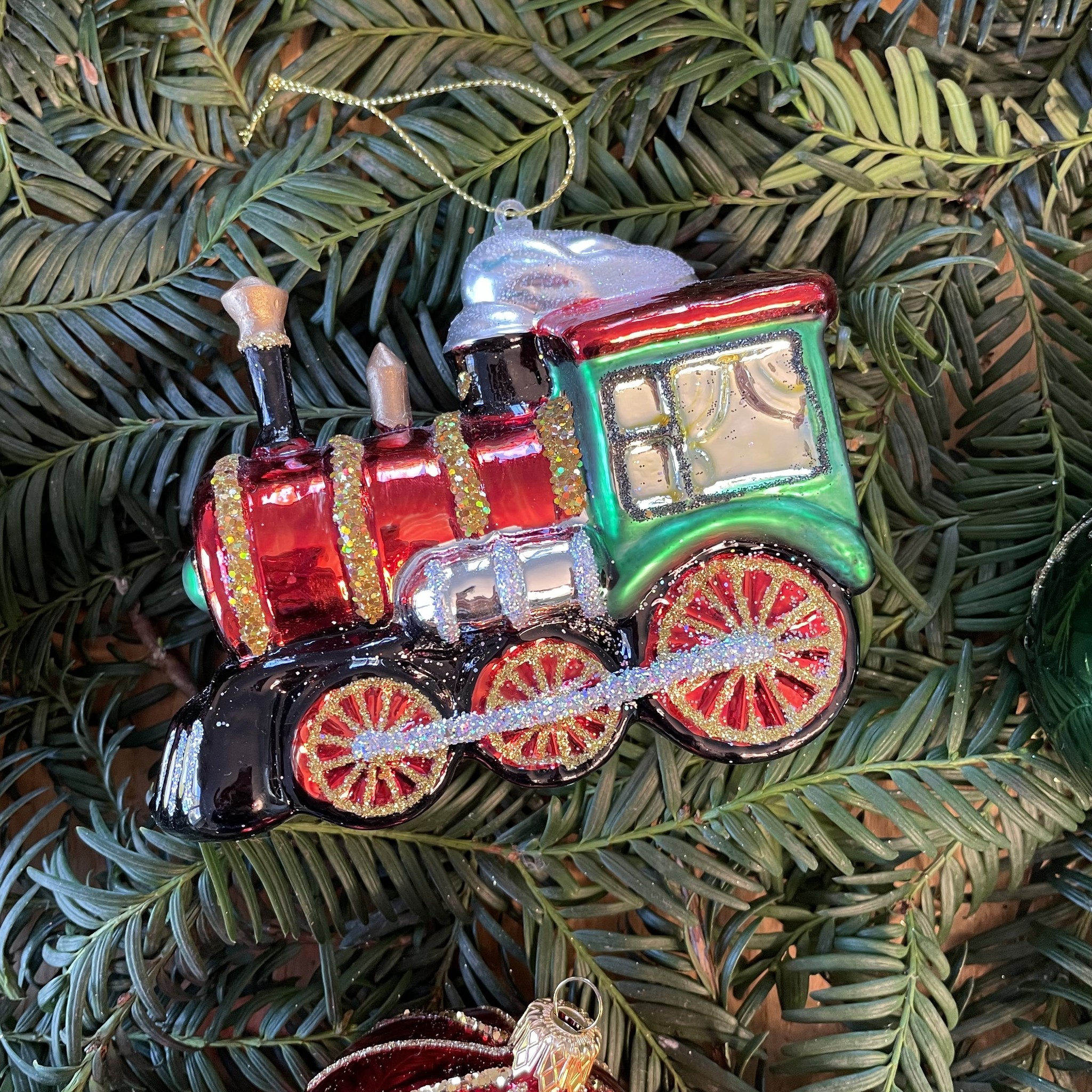 Prachtige Trein kersthanger in traditionele kerstkleuren van Glas