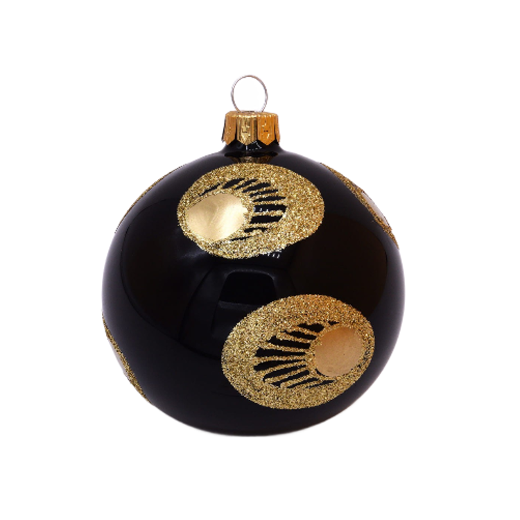 Kerstbal zwart glans met ronde gouden glitter decoratie 8 cm - set van 3